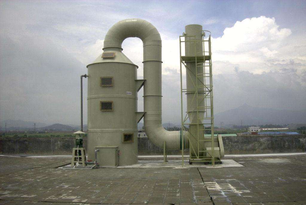玻璃鋼酸霧凈化塔是一種改進型產品,它采用清華大學的最新科硎成果,并結合了國內外同類凈化塔的優點,由清華大學對我廠生產的凈化塔進行重新設計,采用一級鼓泡,兩級噴淋,四級吸收,同時對填料層及塔體進行了技術參數上的優化,凈化效率可達98%,凈化后的酸霧廢氣大大低于國家排放標準,是當前國內外最理想的高濃度、較高溫度酸堿凈化設備。